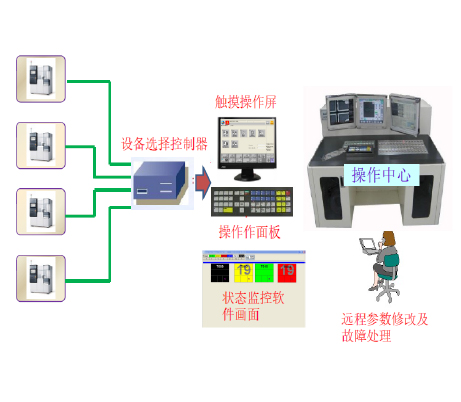 對機臺采取集中控制遠程消警,主要可以提高機臺的生產效率節省用工成本。